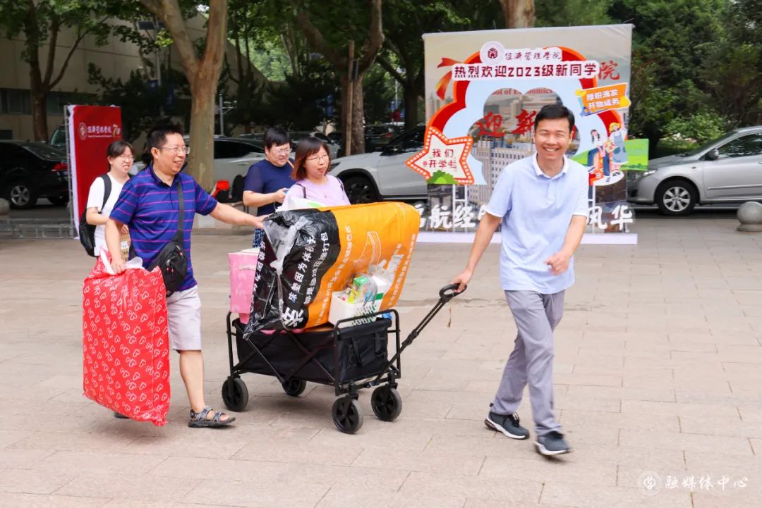 在东校园迎新点,王同奇对前来报到的新生及家长们表示欢迎。他回忆了自己求学时期作为党员带头服务引导新生的经历,了解了经济管理学院研究生王艺璇积极参加“创青春”中国青年碳中和创新创业大赛的故事。王同奇表示,新时代的青年要将青春梦和中国梦相结合,成长为创新、创业、创造的主力军、生力军,为实现“双碳”目标贡献青春力量。
