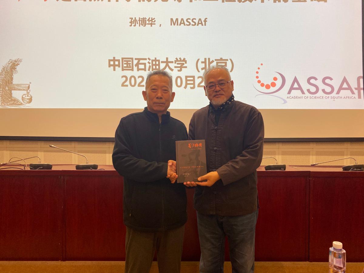 报告结束后,孙博华院士与在座师生进行了交流与互动。高德利院士表示,孙博华院士深入浅出地阐述了力学在自然规律研究与工程问题解决中的关键作用,并鼓励大家聚焦科学与技术前沿,注重理论与实践相结合,深耕所在的专业领域,书写人生辉煌篇章。在座师生反响强烈,受益匪浅。会后,高德利院士为孙博华院士颁发了“海风讲坛”纪念品,孙博华院士为学校赠送了译著《普朗特传》。