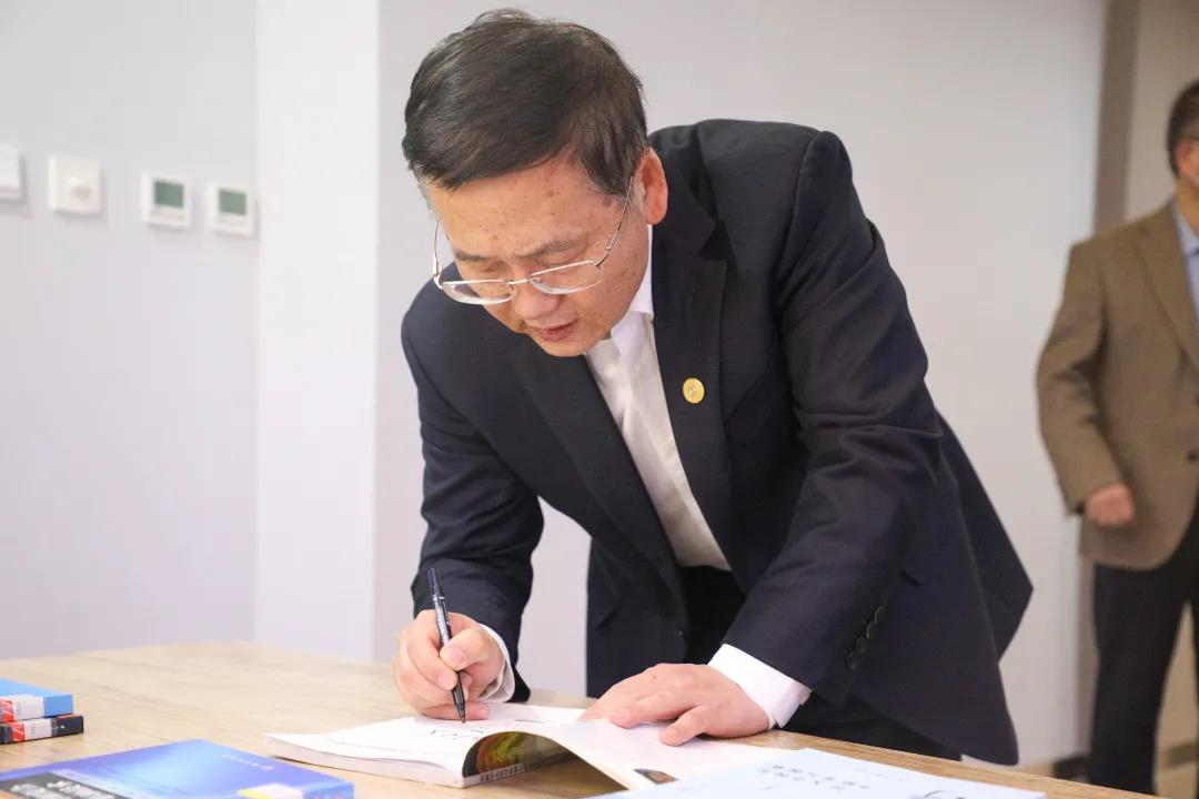 座谈会后,三位校友院士还在校领导陪同下参观了校史馆,并在学校图书馆藏的个人著作上题字留念。