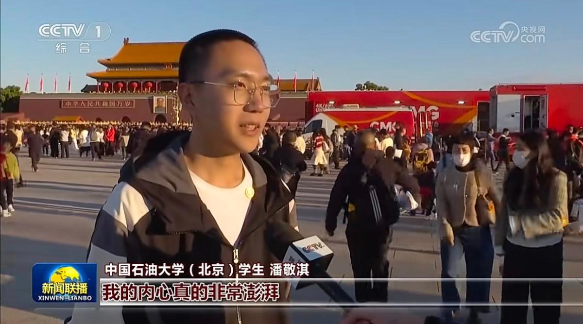 10月1日,天安门广场举行了2024年国庆升国旗仪式,迎着清晨的第一缕阳光,在雄壮的国歌声中,五星红旗冉冉升起。来自新能源与材料学院、梦溪书院200名师生代表与来自首都近2000名大中小学生共同赴天安门观礼台观看升旗仪式;还有一批同学自发前往观看升旗仪式。中央电视台进行了全程记录采访,李荣博、王由、杨昊澎、杨建明、王子豪、马志德、潘敬淇等同学接受了央视记者采访,表达了牢记习近平总书记嘱托,用奋斗书写无悔的青春,为祖国能源事业贡献力量的决心。