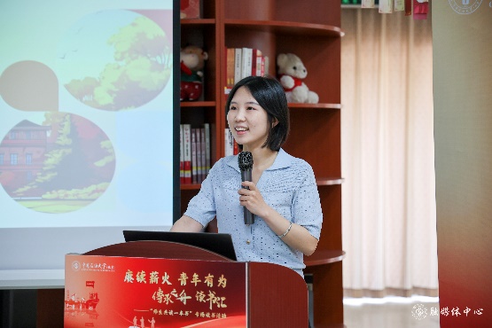 在“言心声”环节,马克思主义学院教师国若家回顾了朱光潜先生一生求学、求职的经历,结合《给青年的十二封信》一书的作者朱光潜先生的成长背景、人生经历、语言风格,阐释了该书为什么能解答青年的疑问。她鼓励同学们要在“实事求是,艰苦奋斗”的校风引领下,到祖国需要的地方去。