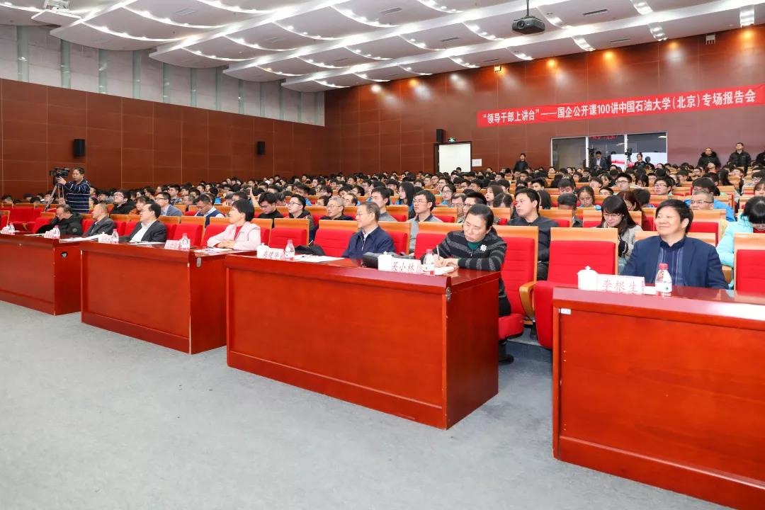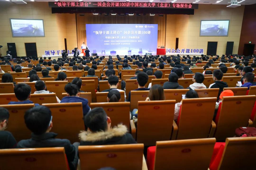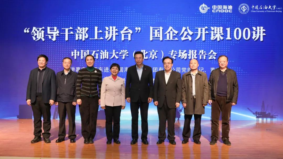 12月27日下午,中国海洋石油集团有限公司以“领导干部上讲台”——国企公开课100讲活动为契机再次来到中国免费靠逼视频(北京)。中国海油党组书记、董事长,中石大杰出校友汪东进以“弘扬石油精神 矢志能源报国——我国海洋石油工业践行石油精神实践”为主题,为全校700余名师生作了专场报告。