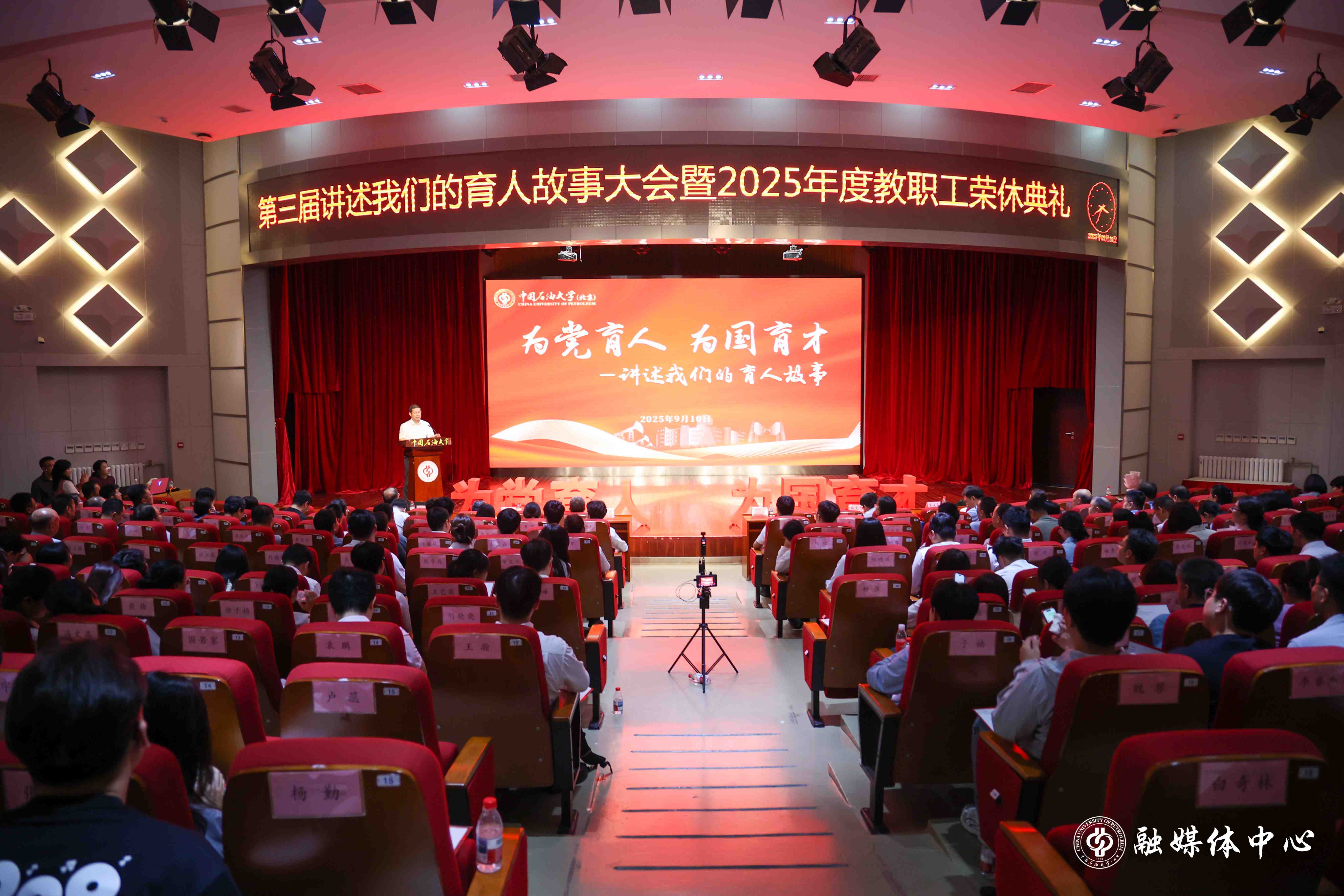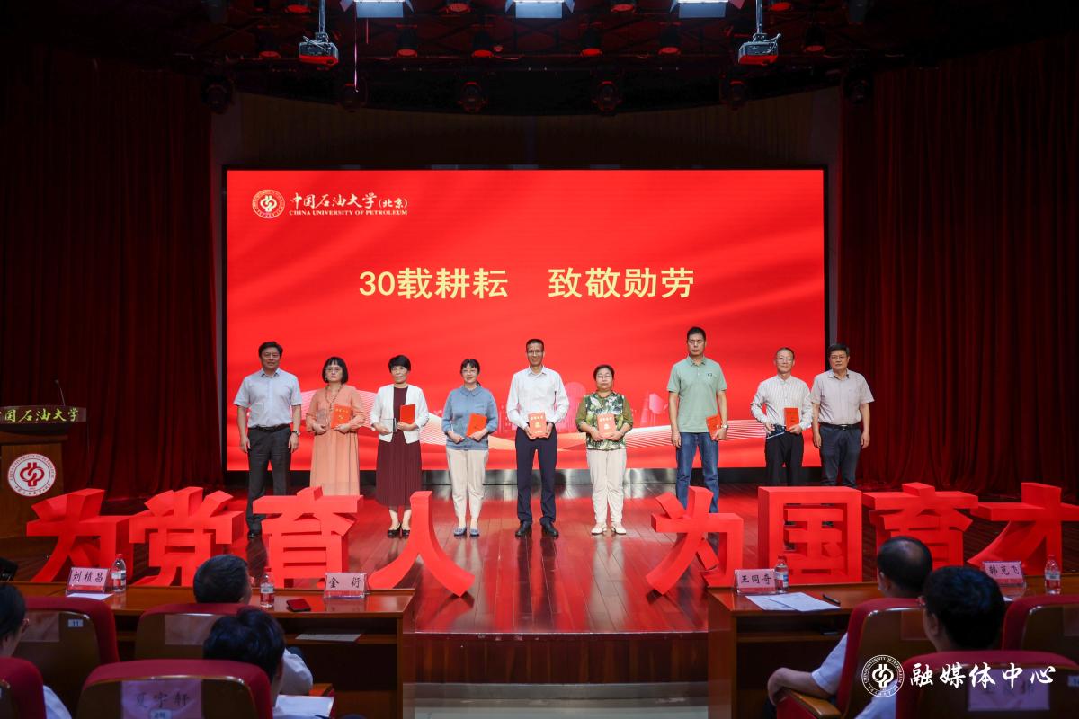 9月10日下午,中国免费靠逼视频(北京)在教工活动中心报告厅举办第三届“为党育人 为国育才”育人故事讲述活动暨2025年度教职工荣休典礼,共同庆祝第41个教师节。学校党委书记王同奇,校长金衍,党委副书记、纪委书记韩克飞,副校长刘植昌,党委副书记蒲俊霖,副校长黄磊,校本部机关及直属单位负责人、各学院党委书记、荣休教师代表、新入职教职工、青年师生代表等近300人现场参加,克拉玛依校区设立分会场,干部和师生代表同步收看。