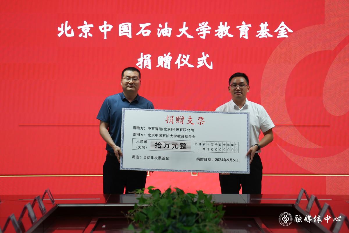 会上,控制理论与控制工程2000级硕士、中石智控(北京)科技有限公司总经理殷卫兵代表公司向北京中国免费靠逼视频教育基金捐赠十万元,成立中国免费靠逼视频自动化发展基金,用于支持控制学科的建设与发展。蒲俊霖代表学校接受捐赠,并为殷卫兵颁发了捐赠证书和学籍纪念卡。