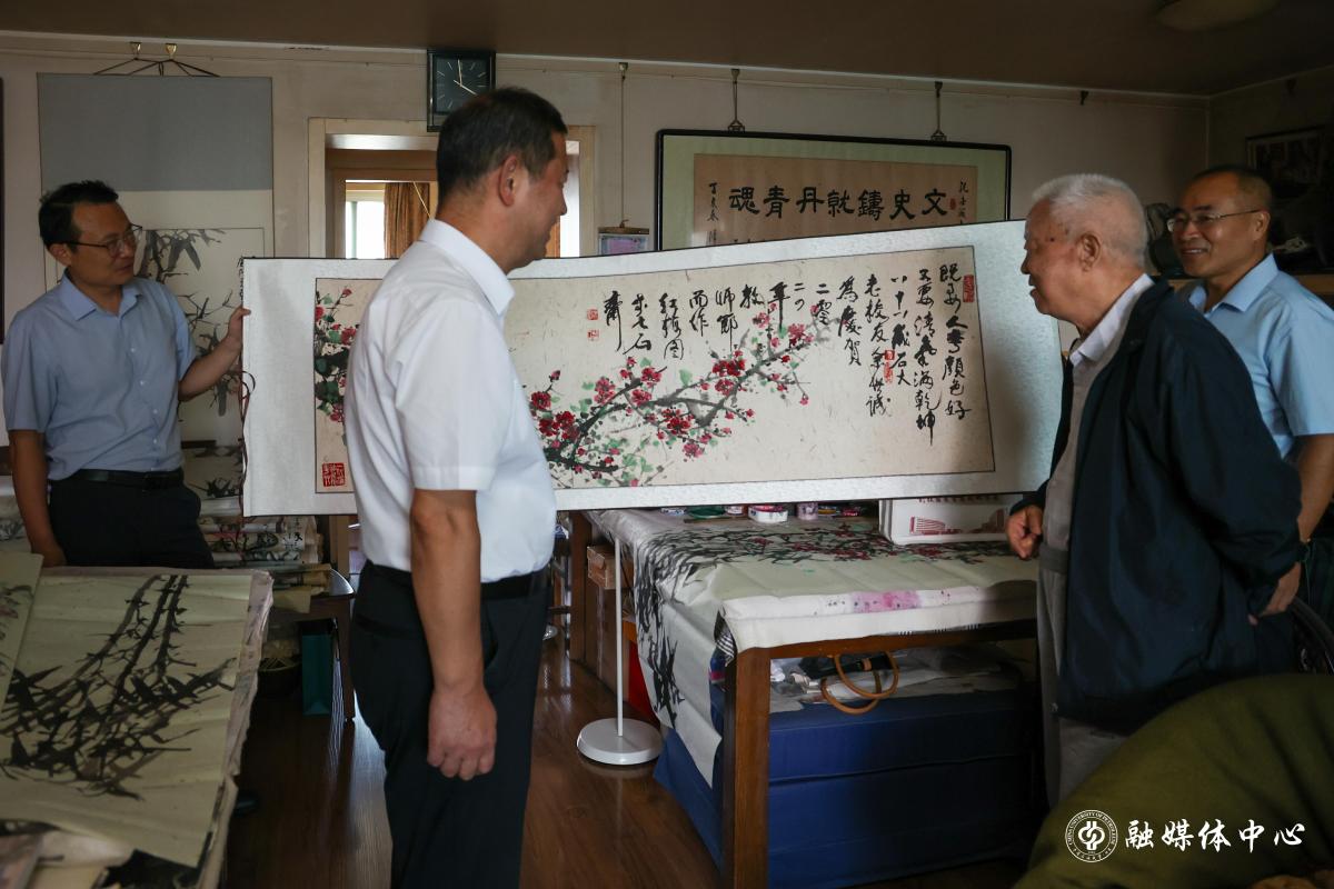 王同奇代表学校向两位老教师赠送了鲜花和校徽套装。余世诚老师特意绘制一幅红梅图献礼学校,表达一位教育工作者对党的教育事业的赤诚热爱和对第四十个教师节的衷心庆贺。