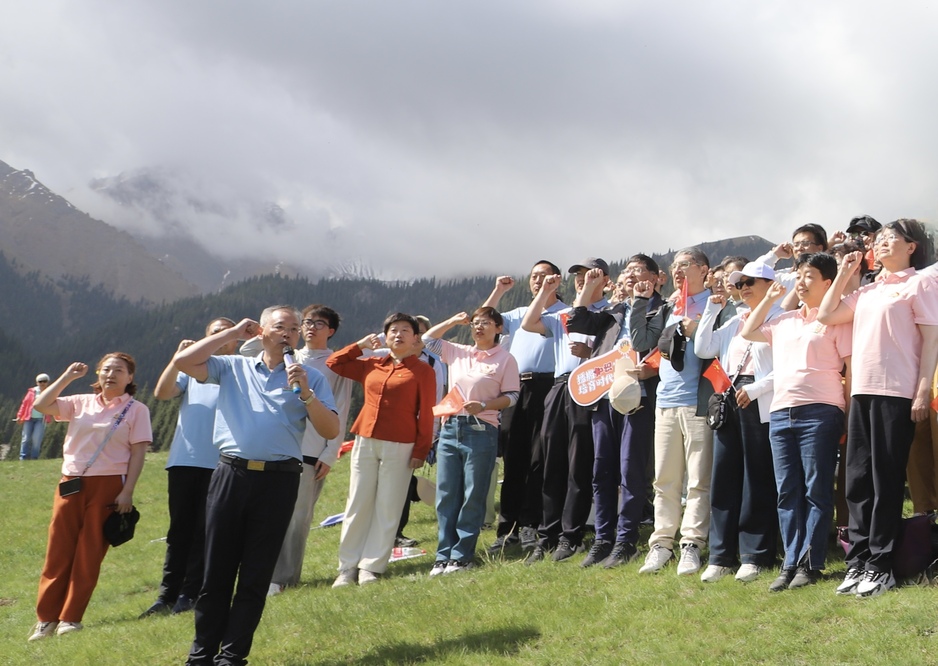 微党课结束后,全体党员重温入党誓词,铿锵誓言与巍峨山峦共鸣,凝聚起“为党育人、为国育才”的坚定信念。实践团教师纷纷表示,将以更加饱满的热情、更加激昂的斗志、更加坚定的信念投身于教育事业中。华北电力大学援建教师骆小平动情地说道:“从独库公路十年贯通边疆幸福路,到校区十年培育西部建设者,两个‘十年’同样意义非凡。作为支援西部教育的一员,深感责任重大,使命光荣。”2021级资源勘探学生党员邸心光表示,独库公路是一代代建设者用青春与热血铸就的丰碑,而校区近十年的建设成果,也离不开广大援建教师和银龄教师的坚守和奉献。作为学生党员,自己定以前辈为榜样,将青春扎根西部,让理想绽放在祖国最需要的地方。