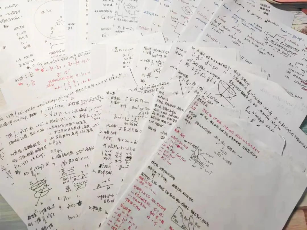 张小宇有个好习惯:每周对已学过的知识内容进行梳理和总结。她说:“我会拿出好几页空白A4纸,先从整体上搭建结构框架,然后再一一往里面填充知识点,这样可以串联起每一个章节。”每当看到一张张密密麻麻写满了笔记的纸张,张小宇都会有一种特别的满足感与成就感,就像是去大海中打了回渔,然后满载而归。