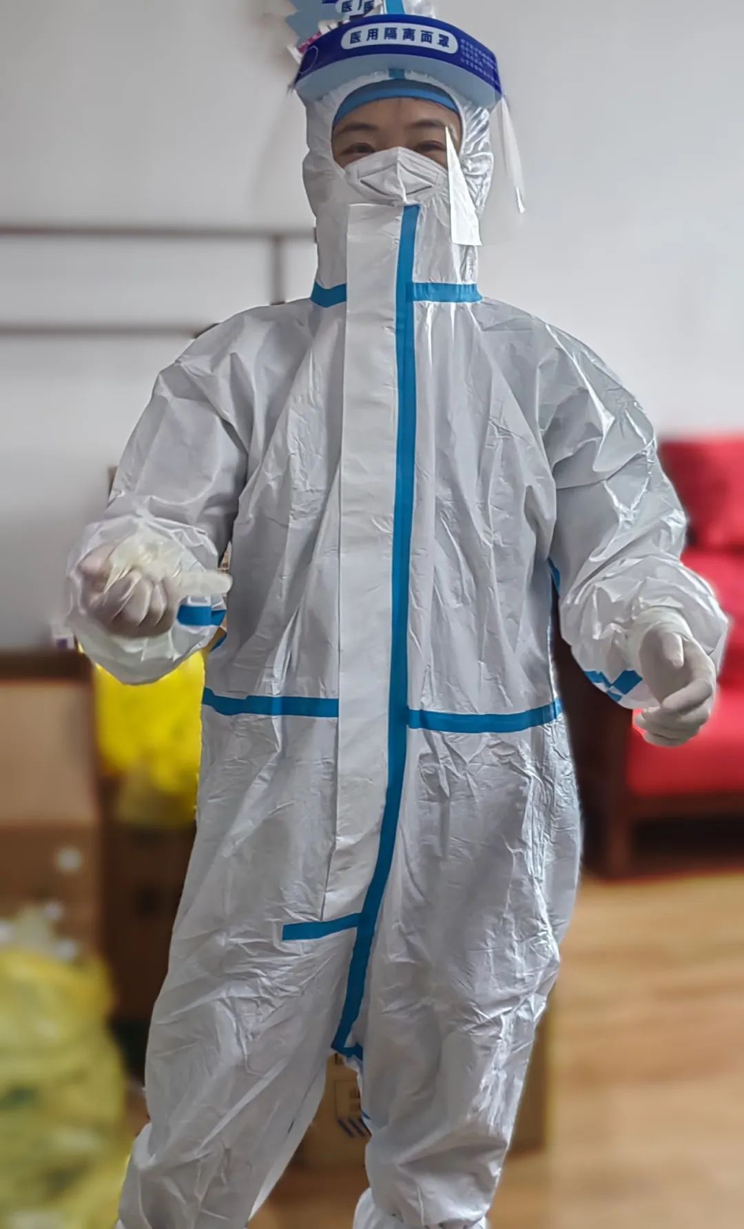 由于产后恢复不佳,她已经许久没有提过重物。但是一旦投入工作,她就忘了自己特殊的身体情况,手提、肩抗,一天上下楼20多趟,一顿餐送下来,衣服都湿透了,隔离面罩上也布满汗水呵气凝成的水珠。为了让学生早点吃上饭,她自己却经常顾不上吃饭。
