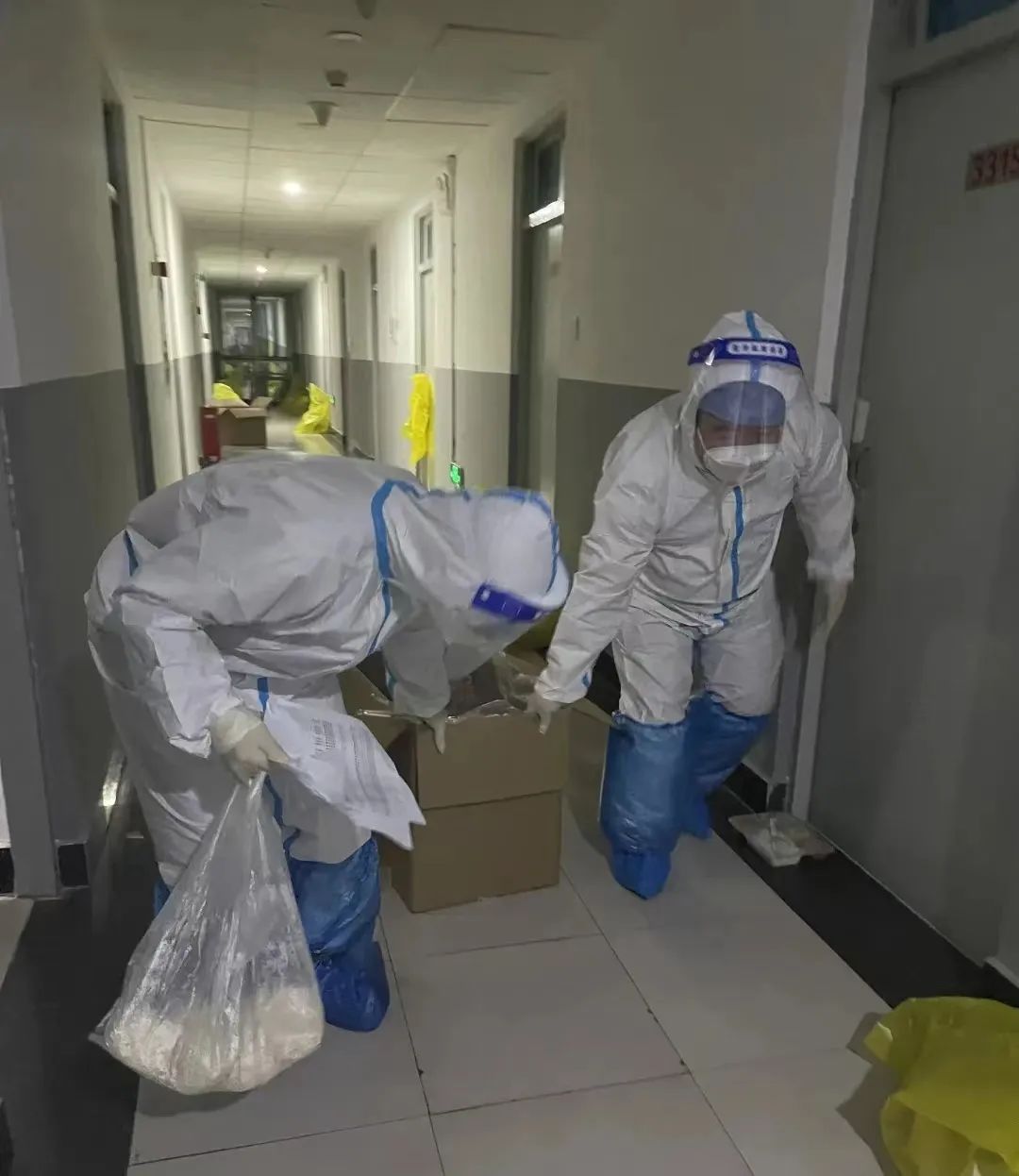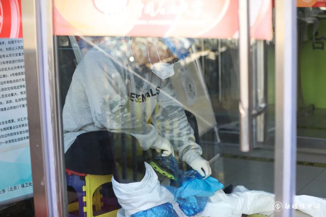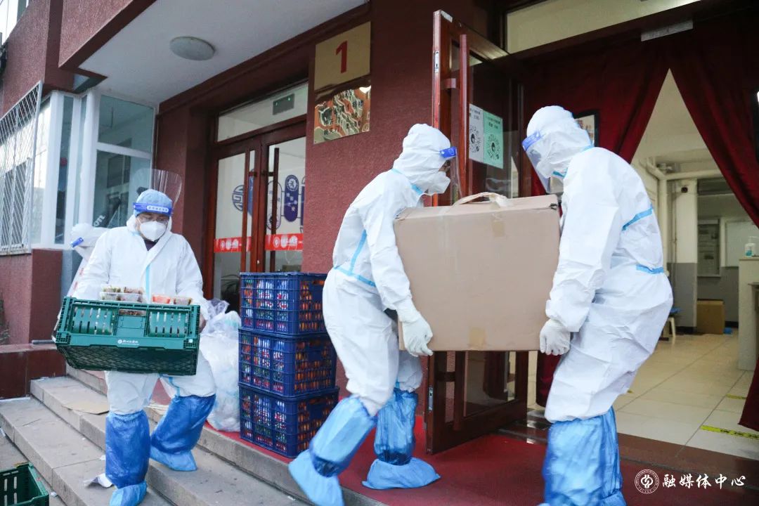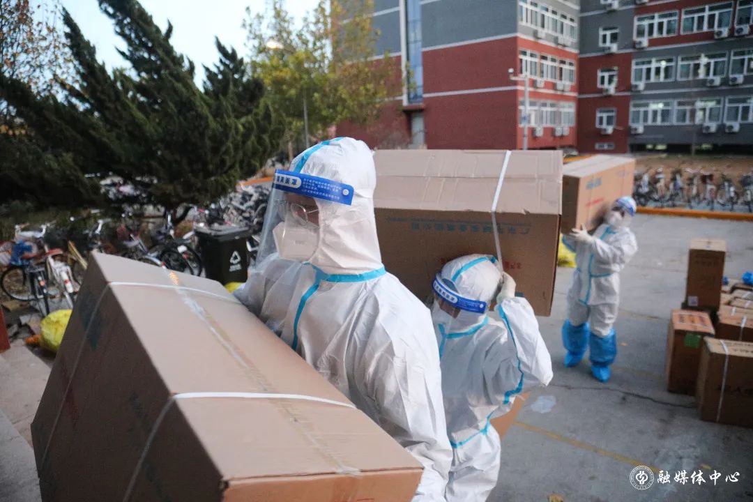 在东校园,像赵振聪这样的老师还有很多。许多党员干部主动来到东校园,为学生运送、发放物资。屋外寒风阵阵,因为防护服厚重不透气,每次送完餐衣服也已经全部湿透。一天三身汗”“很多老师都感冒了,有些年龄大的老师体力不支,就是在努力撑着,也很心疼。