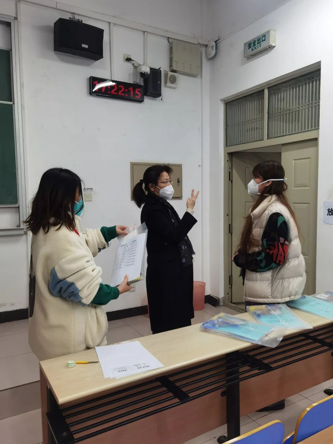 在东校园考区,化学工程与环境学院的李瑞丽老师是监考的老师之一。“我可能是入驻东校园的年龄最大的女老师。”11日得知东校园需要人手,李瑞丽老师第一时间入驻,最开始在汇才公寓2号楼执行为学生分餐的任务,13日她又服从安排成为这次考试的监考老师。