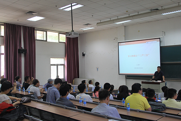 7月2日下午,地球物理与信息工程学院党委在地质楼新2教室举办“三严三实”教育活动,党委书记王智广给全体教工党员讲授党课,党委副书记庄玉琳主持了学习会。
