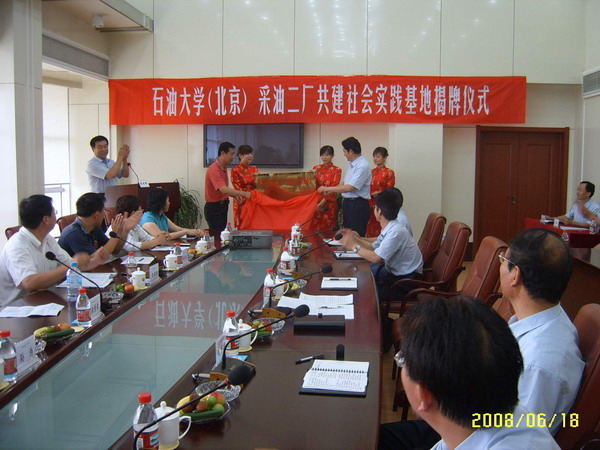 其间,数理系社会实践团队受到了采油二厂同志们热情周到的接待,实践内容十分丰富。实践团队成员通过座谈和参观厂史馆,了解了采油二厂战荒原、斗碱滩的艰苦创业历程和不断进取、努力创新所取得的辉煌业绩,感受了石油人“爱国、创业、求实、奉献”的石油精神和 “三老四严”的优良传统。在接受了入厂安全教育后,参观了职业技能鉴定站与歧二站、南一站站区,以及修井作业现场,数理系学生和教师不仅通过现场观摩听讲学到了很多采油工艺知识,增强了对石油工业的了解,而且亲身领略了石油人“崇尚实干、务实求效”的工作理念和“踏实干好每一天,坚实走好每一步,扎实做好每件事”工作作风。数理系实践团队还与采油二厂隆重举行了共建社会实践基地的揭牌签约仪式。