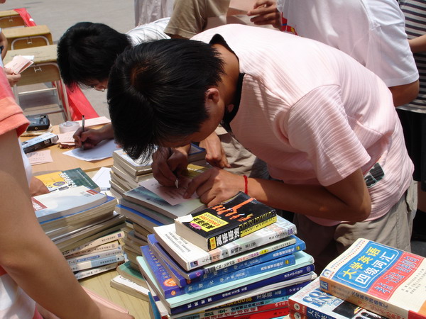 活动当天,许多即将离校的同学们纷纷将自己用过的课本、杂志以及一些精美读物捐赠出来,回报母校。有的同学希望把自己的专业书籍捐赠出来能对自己的学弟学妹学习有一定的辅助作用。有的同学是全寝室一起行动,有一个寝室一次捐赠书籍就达125册。机电学院学生会也特意制作了精美的卡片,赠送给参与此次活动大四学长,表达对他们美好的祝福。
