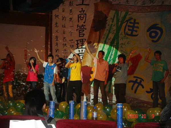 一段绚丽的舞蹈拉开了晚会的序幕,“脉动诗情溢,卷开佳句出”,工商管理学院迎新晚会正式启航。魅力独唱、深情对唱、火爆的街舞、柔情的民族舞……丰富多彩的节目展现了同学们的多才多艺。钢琴,吉它等乐器的精湛演出则为观众带来了心灵的宁静与思考。相声,话剧与T台秀更充分显示了同学们勇于创新与探索的精神风貌。整场晚会高潮迭起,异彩纷呈。最后,一首关于青春的诗朗诵传达了同学们对于新生活的向往与热情,对于青春的理解与追求。