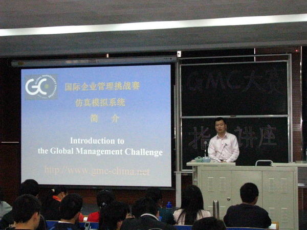 为进一步做好2008年国际企业管理挑战赛(GMC)的赛事宣传、报名和组织工作,提高我校学生的竞赛成绩和竞赛水平,工商管理学院于10月14日16:00在一教104教室举办国际企业管理挑战大赛专题讲座。本次讲座的主讲嘉宾为国际企业管理挑战赛(GMC)组委会中国赛区总监诸葛谦。