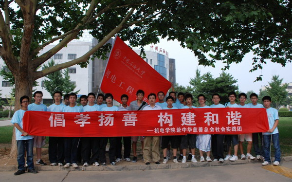7月7日下午,机电工程学院暑期赴中华慈善总会社会实践团举行出征仪式,校团委书记岳长涛老师出席了此次出征仪式并讲话。