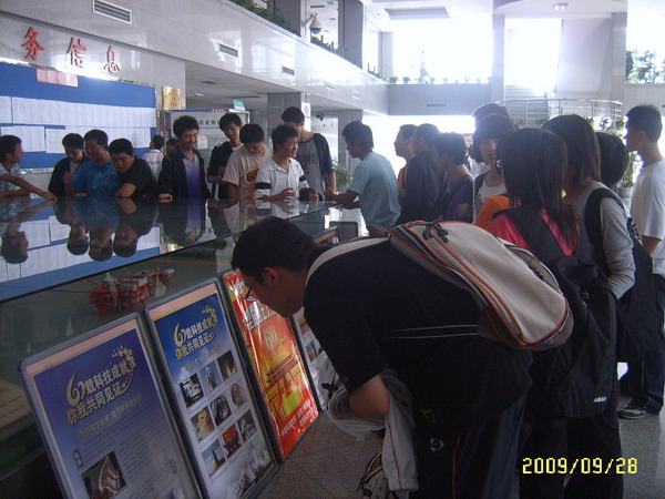 为迎接新中国六十周年华诞,展现祖国六十年来的科技成就,进一步在广大学生群体中弘扬爱国主义精神,校团委和数理系于2009年9月28日起在三教大厅推出“六十今昔,中华崛起“大型爱国主义展览。