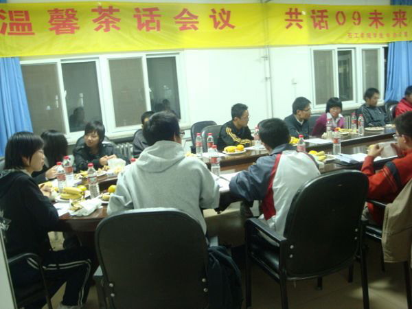 为解答09级新生班长团支书工作学习生活上的疑惑,提高班长团支书的工作效率,促进石油天然气工程学院的学生管理,10月22日晚6:30,由石油天然气工程学院分团委组织,在校团委会议室举办新老生班长团支书茶话会。