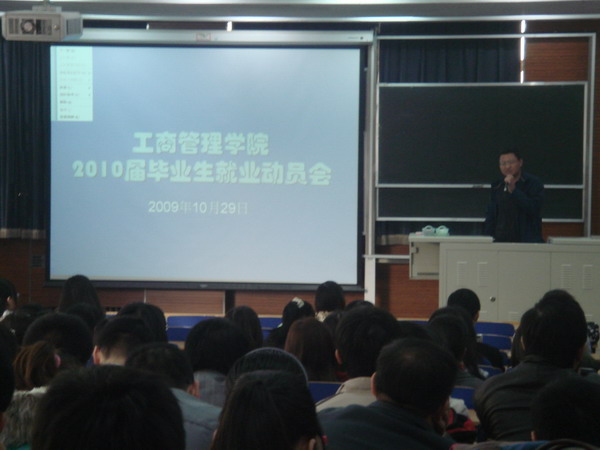 工商管理学院高度重视就业工作,针对目前通用专业严峻的就业形势,通过辅导员与学生“一对一”咨询、工商管理学院专场招聘会的形式,稳步推动就业工作。本次动员大会是继10月中旬中海油专场招聘会就业动员之后,学院召开的第二场大型的就业动员大会。