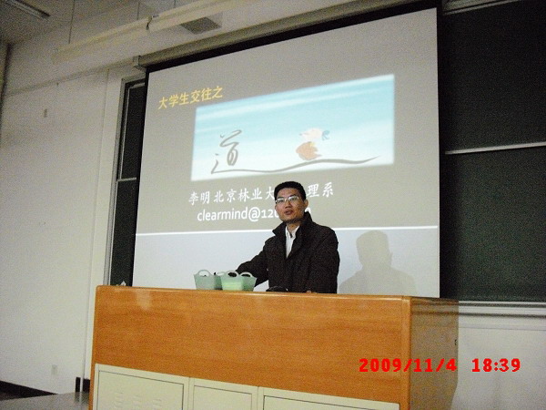 11月4日晚,机电工程学院特别邀请了北京林业大学的心理系教师李明博士在3教302为我校学生做了题为《大学生交往之道》的讲座。我校心理咨询中心主任张玉英老师也出席了这次讲座。