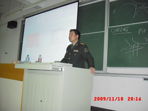 11月10日晚,机电工程学院特别邀请了国防大学防务学院教译室副主任贺从念大校在3教211为我校学生做了题为《中国与联合国维持和平行动》的讲座。