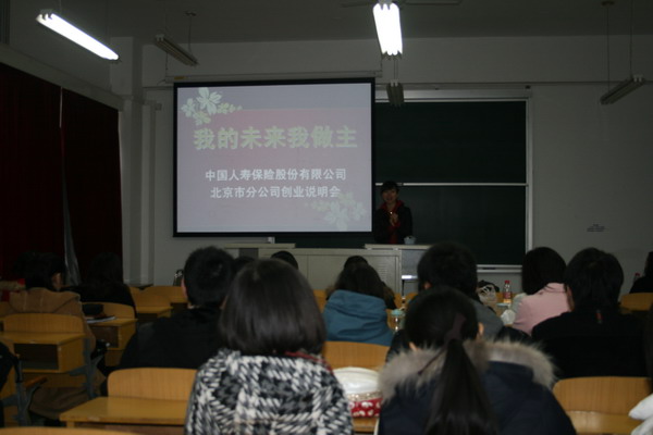 11月11日,工商管理学院第二场2010届毕业生专场招聘会在二教107成功举办,特邀请中国人寿保险股份有限责任公司北京分公司来校招聘。