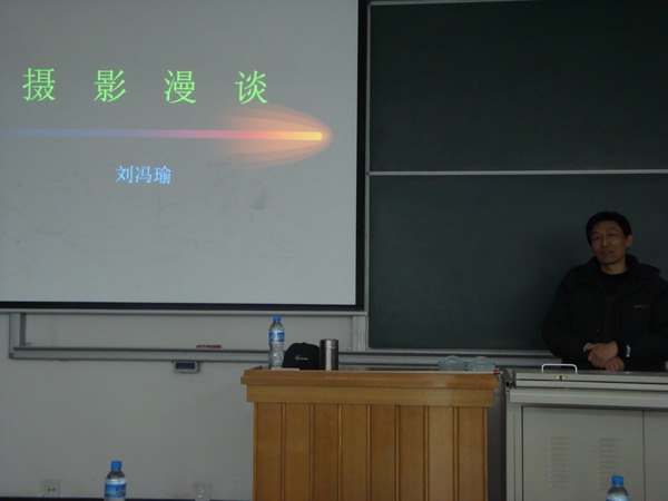刘冯瑜老师以英国约翰·海吉科《新摄影手册》中的一段话作引子,带领大家开始了一场精彩的“摄影漫谈”。漫谈的内容主要包括摄影的技术性、艺术性和摄影的实践三个方面。从技术方面讲起,详细讲述了相机的结构组成和工作原理以及数码照片后期的计算机处理等专业知识,并重点讲解了镜头和光圈的相关知识。