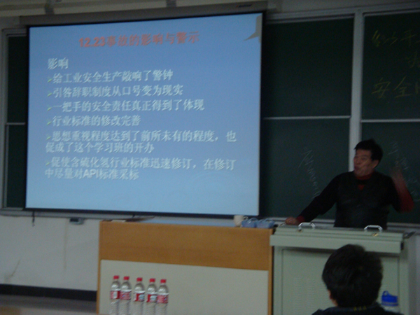 讲座最后梁永图副书记做了总结讲话,他指出,此次讲座的举办主要是对即将走向工作岗位,即将从事石油行业的学生们进行一次安全教育,树立同学们的安全意识,对自己、对家人、对社会负起应尽的责任。
