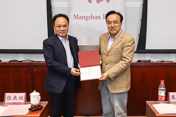3月29日下午,石大在主楼C308报告厅举办蹇锡高院士聘任仪式暨“蟒山讲坛”第十期学术报告会。校长张来斌为蹇锡高院士颁发“双聘院士”聘任证书和“蟒山讲坛”纪念牌。党委副书记、副校长韩尚峰主持报告会。