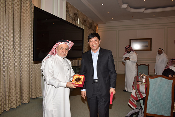 李根生向Khaled S. Al-Sultan赠送学校纪念品