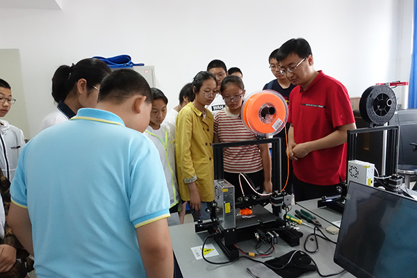 “机器人实验室开放活动”分为两个环节。在第一环节“机器人时代”科普讲座中,中小学生及家长在机械与储运工程学院实验教学中心通过聆听实验教学中心教师的讲座,了解了机器人制作和操作的基础专业知识以及机器人发展的历史进程、前沿技术和发展趋势,学习了全国大学生机器人大赛涉及的科技知识,并在创新案例中对机器人创新发展产生了深厚兴趣。在第二环节“机械创新实验室参观”活动中,中小学生及家长学习了3D打印机工作基本原理,近距离体验3D打印技术,观看3D打印机打印实物模型、大学生3D打印创新作品,体验操作了爬管机器人、水中巡检机器人、无机人调试装置和轮履复合作业机器人等大学生机器人创新作品,在互动学习中直观了解机器人技术。