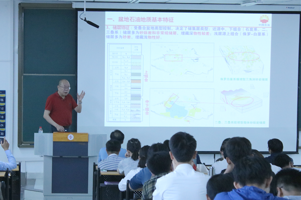 唐勇教授以《玛湖大油区发现之旅与主要启示——跳出断裂带走向凹陷区,二十余载持续积淀与超越,修得今朝十亿吨大油区》为题,从盆地特征及玛湖油区概况、玛湖发现之旅的七大战役、三大认识突破和理论创新、四点重要启示与勘探感悟等方面,介绍了玛湖大油区的发现历程,重点讲述了勘探过程中的创新实践与启示,给校区师生上了一堂生动的油气勘探案例分析课。