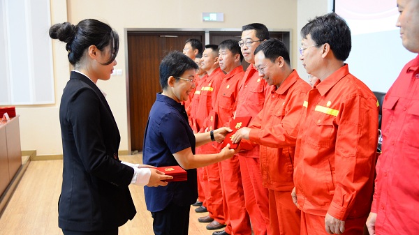 山红红为集团公司技能专家颁发了校外专业实践指导教师聘书,黄革为参与技能联合攻关的石大教师颁发了技能专家工作室技术顾问聘书。