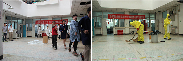 演练模拟了危险废物在校内转运过程中,发生意外泄漏事故的情况下,工作人员紧急启动危险废物泄漏事故应急预案,根据规范流程,各司其职、密切配合,经过紧急疏散、人员救治、现场警戒、实地勘察、检测评估、集中收集处置泄漏物、转移暂存等作业,泄漏的危险废物得到了控制和清除,确保了实验室人员、财产和环境安全,避免了人员伤亡和环境污染。