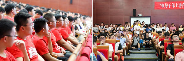 报告最后,杨华以中国海油优秀员工屈长龙的先进事迹为例,展现了海洋石油人奋战在蓝色国土,贡献青春力量的初心和使命。他号召石大学子加入国企、发展国企、壮大国企,努力为建设能源强国和中华民族伟大复兴的中国梦不懈奋斗,成就出彩人生。
