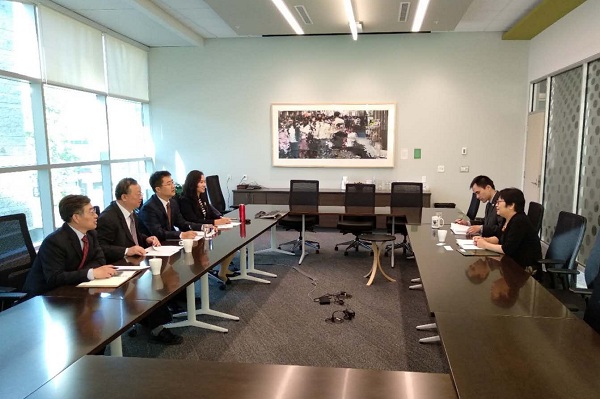 在麦科文大学,雷玉江一行会见了该校主管国际交流工作的副校长金伯利-霍华德(Kimberley Howard )等。代表团一行参观了创新创业中心,听取了创新创业中心主任利奥-廖(Leo Liao)的介绍,双方就感兴趣的中心、社区、大学、政府间的合作模式进行了探讨。随后,代表团一行与霍华德、商学院执行院长威廉-魏(William Wei)就本科生短期交流项目进行了深入交流,并在合作专业、学生数量、交流方式、学分学时等方面达成共识。双方同意起草合作协议,尽快签署合作协议、启动相关项目。代表团一行向麦科文大学介绍了由石大发起的“世界能源大学联盟”以及联盟的运行情况,并就学科发展规划与麦科文大学进行了交流。