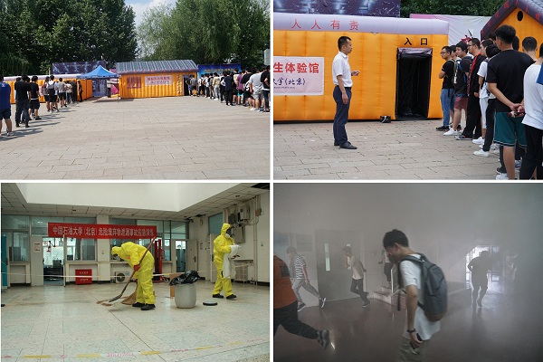 贴近实战,开展事故应急演练。为增强师生应对突发状况的自救逃生能力,保卫处开展了多项事故应急演练活动。6月13日,保卫处依托模拟灭火、逃生疏散实训设备,组织各学院(研究院)学生进行了为期四天的消防安全培训与演练,宣讲灭火器的使用与烟雾逃生技能,1000余名学生参加了活动。6月18日,科学技术处组织开展了危险废弃物泄漏事故应急演练。演练过程中,工作人员紧急启动泄漏事故应急预案,及时控制和清除泄漏的危险废物,确保了实验室人员、财产和环境安全。6月20日,保卫处、化学工程与环境学院、校医院联合举办了消防应急疏散演练活动,100余名师生参加了活动。活动开始后,浓烟四起,楼宇消防广播引导师生紧急疏散,微型消防站站员迅速奔赴现场灭火并抢救伤员。随后保卫处工作人员指导同学们进行了灭火实操演练。