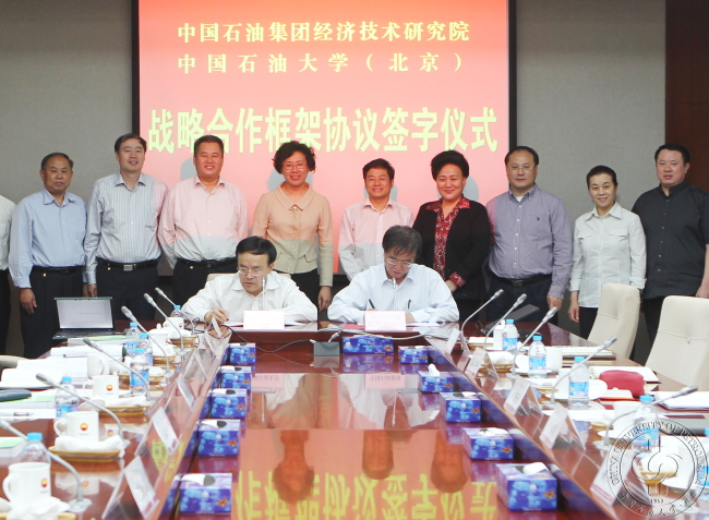 5月20日下午,中国免费靠逼视频(北京)与中国石油集团经济技术研究院在研究院签署了战略合作框架协议。中国免费靠逼视频(北京)校长张来斌、副书记吴小林、副校长陈大恩;经济技术研究院院长许永发,副院长钱兴坤、吕建中,工会主席郑丽芳,院长助理蔡建华等出席了签约仪式。张来斌校长与许永发院长分别代表合作双方签约。