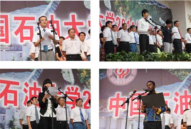 工商管理学院2011级本科生单清青代表新生发言,描绘了梦想,并立下了志愿。来自加纳的石油工程学院2011级本科生阿萨莫代表留学生新生讲话,用稍显生涩的中文却表达了对免费靠逼视频深深的热爱。地球科学学院2010级硕士研究生刘悦代表所有在校生向新生介绍经验、传授方法,帮助新生适应新的生活。机械与储运工程学院教师帅健教授代表广大教师向新生们的到来表示了欢迎,并寄托了老师们更多的期望。