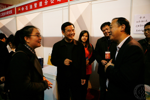 双选会期间,校党委书记蒋庆哲、校长张来斌、党委副书记雷玉江、副校长吴小林、副校长陈大恩、校长助理王国红与中石油、中石化领导就人才培养、校企合作等方面进行了会谈。