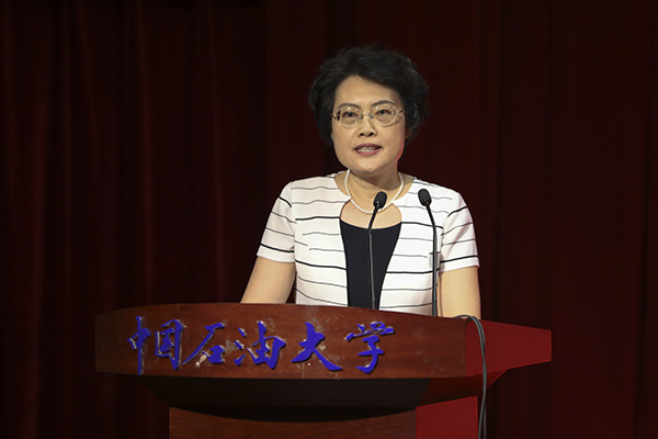 荣休教职工代表梁华庆教授发表了感言,感恩学校的培养,祝愿学校越办越好。她表示,在石大从教整整三十年,“实事求是,艰苦奋斗,爱国奉献,开拓创新”的石大精神早已深深融入了血脉。期待青年教师接过接力棒,承担起历史赋予的责任,传承和弘扬石大精神,将石大精神融入到人才培养、科学研究、社会服务之中,为石大发展创造新辉煌。