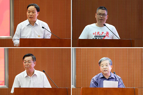 会上,工业外贸专业89级校友、中国石化胜利油田分公司经济开发研究院首席专家郑德鹏,机械电子工程专业95级校友、大唐网络副总裁、徐州市人大代表余海鹰代表返校校友发言。他们回忆了求学和成长经历,感谢母校的培养教育,祝福母校取得的辉煌成就,并表示一定不辜负母校的殷切期望,在各自的岗位上努力工作,再创佳绩。任课教师代表梁景伟、李相方在大会上分别发言。他们深情回顾了当年授课情形和与同学们相处的欢乐时光,对校友们取得的成绩感到骄傲,并祝福校友们在今后的工作中获得更好的发展,生活更加幸福。