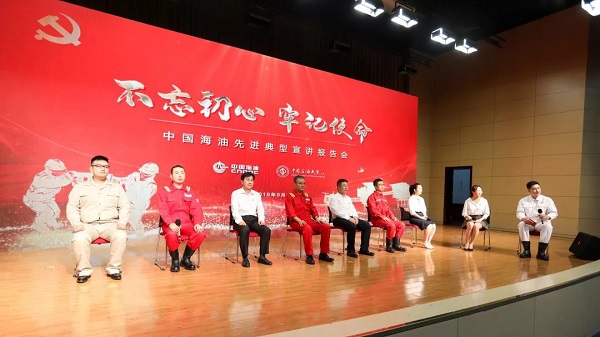 本次宣讲的先进典型包括全国海洋人物、渤海石油研究院地质总师牛成民,全国五一劳动奖章获得者、大榭石化工艺首席工程师兼生产技术部经理王以科,中央企业青年岗位能手、气电集团技术研发中心邰晓亮,全国劳动模范、海油工程安装事业部高级总监刘克建,全国民族团结进步模范个人、集团公司扶贫援藏干部王江涛,全国海洋石油工业先进集体临兴-神府项目指挥部,全国“工人先锋号”“南海二号”钻井平台,报告会还特别邀请了“海上铁人”郝振山到场与石大师生交流。