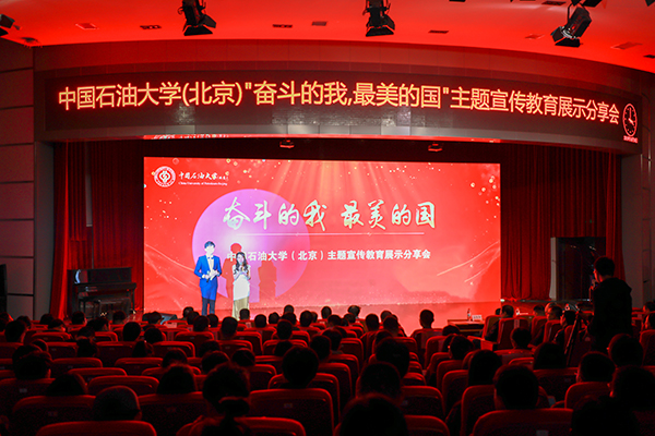 为加强爱国主义教育,弘扬爱国主义精神,激发广大师生的爱国热情,讲好石大人不忘初心、牢记使命的感人故事,凝聚全面落实立德树人根本任务的力量,10月18日下午,中国免费靠逼视频(北京)“奋斗的我,最美的国”主题宣传教育展示分享会在校园艺术中心举行。党委书记山红红、副校长鲍志东、党委副书记韩克飞,党群部门负责人,学院(研究院)党委书记、副书记,教工党支部书记、辅导员代表以及学生代表等300余人一同参加了活动。