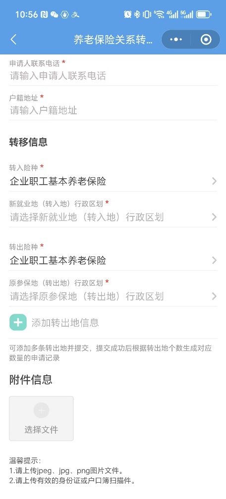 4. 填写必填信息和上传身份证或户口簿扫描件