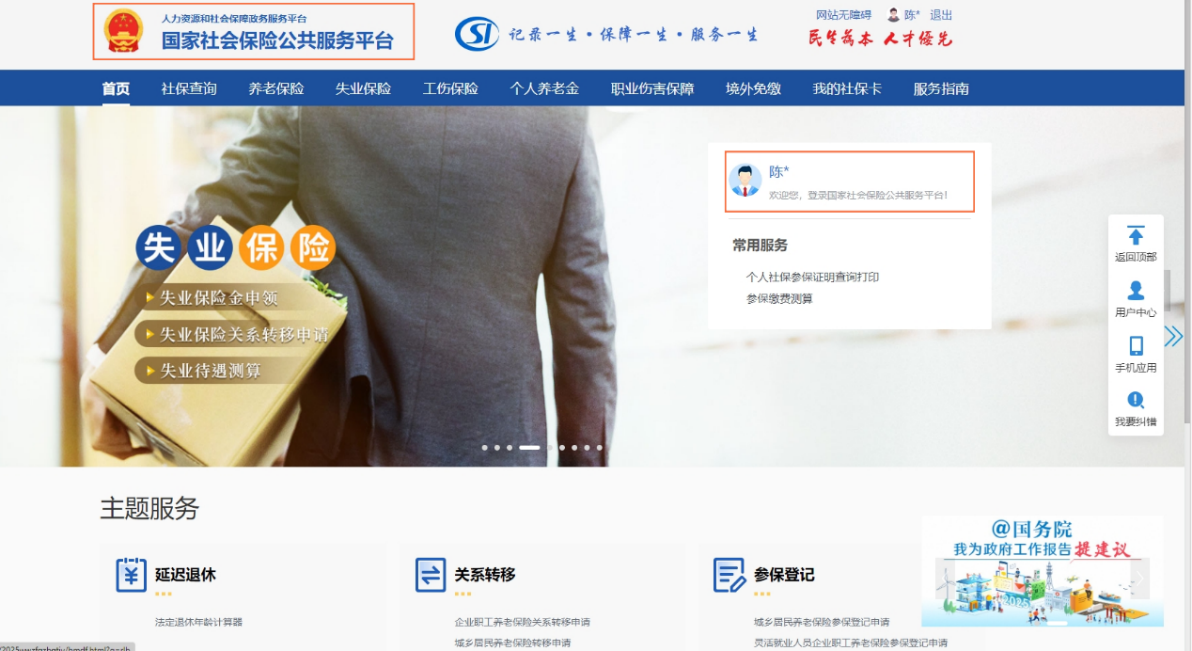 1. 打开国家社会保险公共服务平台,按照指引登录