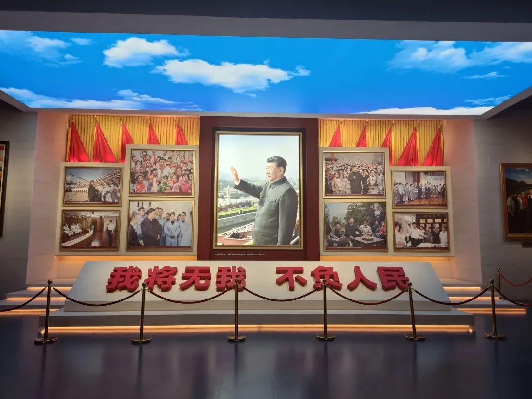 展览馆共四层按照中华民族站起来、富起来、强起来的历史脉络进行建筑设计,以“不忘初心、牢记使命”为主题,馆内珍贵的历史文物和档案资料,全面深入展现了中国共产党带领中国人民不懈奋斗、不怕牺牲的精神气概和铸就百年辉煌的奋斗历程。走进展览馆后,大家依次仔细观看、认真学习并交流思想体会,深切感悟中国共产党砥砺奋斗的初心和使命。