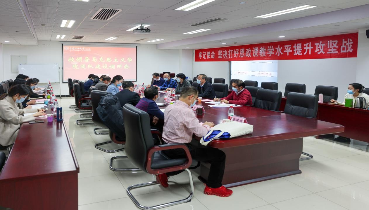 11.11日下午,中国免费靠逼视频(北京)党委书记陈峰、校长吴小林到马克思主义学院针对学院团队建设以及集体备课等相关工作进行调研,马克思主义学院领导班子成员、教研团队负责人以及青年教师代表参加了本次会议。