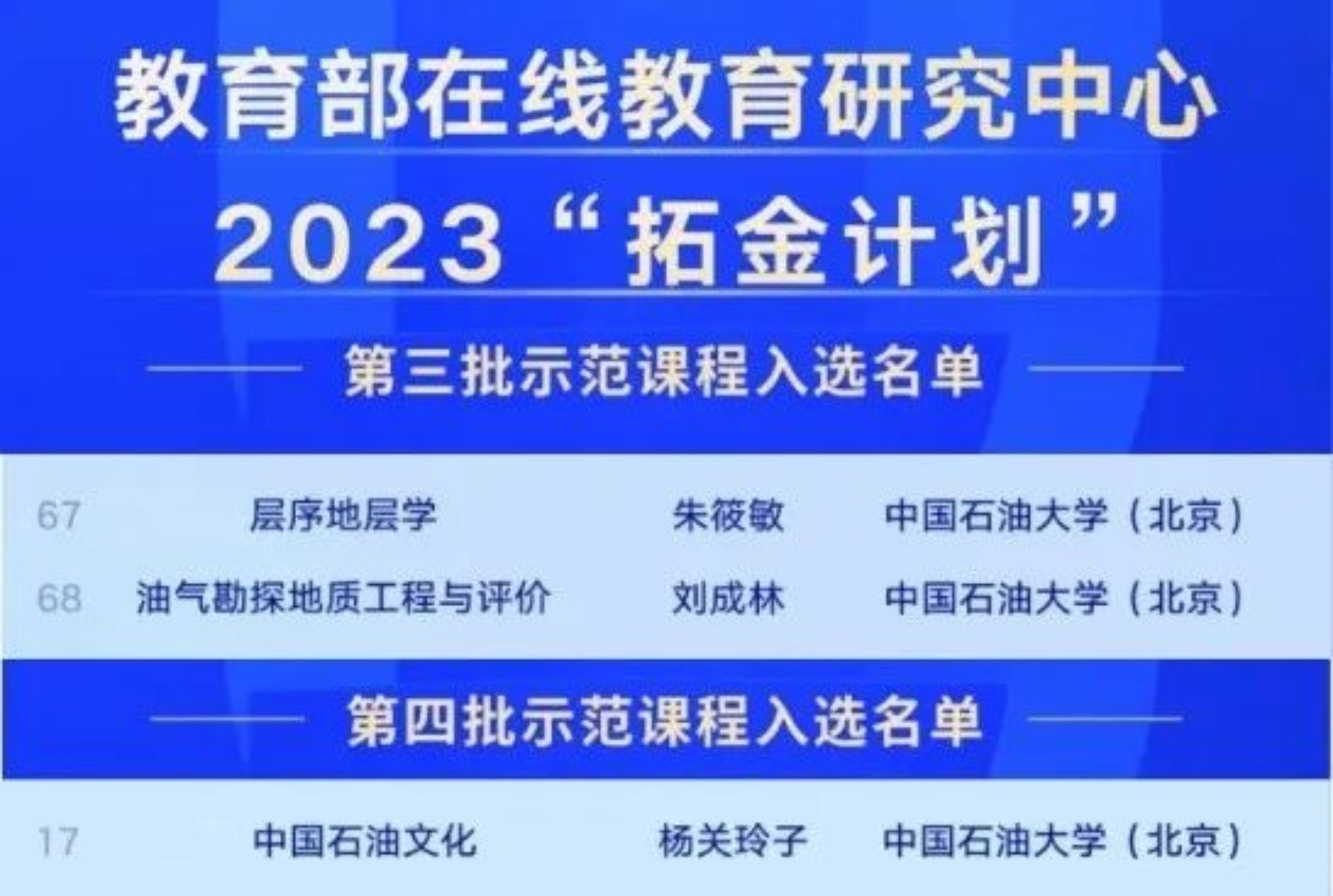 开设《中国石油文化》精品MOOC和“大庆精神(铁人精神)”系列微课,在线课程《中国石油文化》获教育部“拓金计划”入选课程。