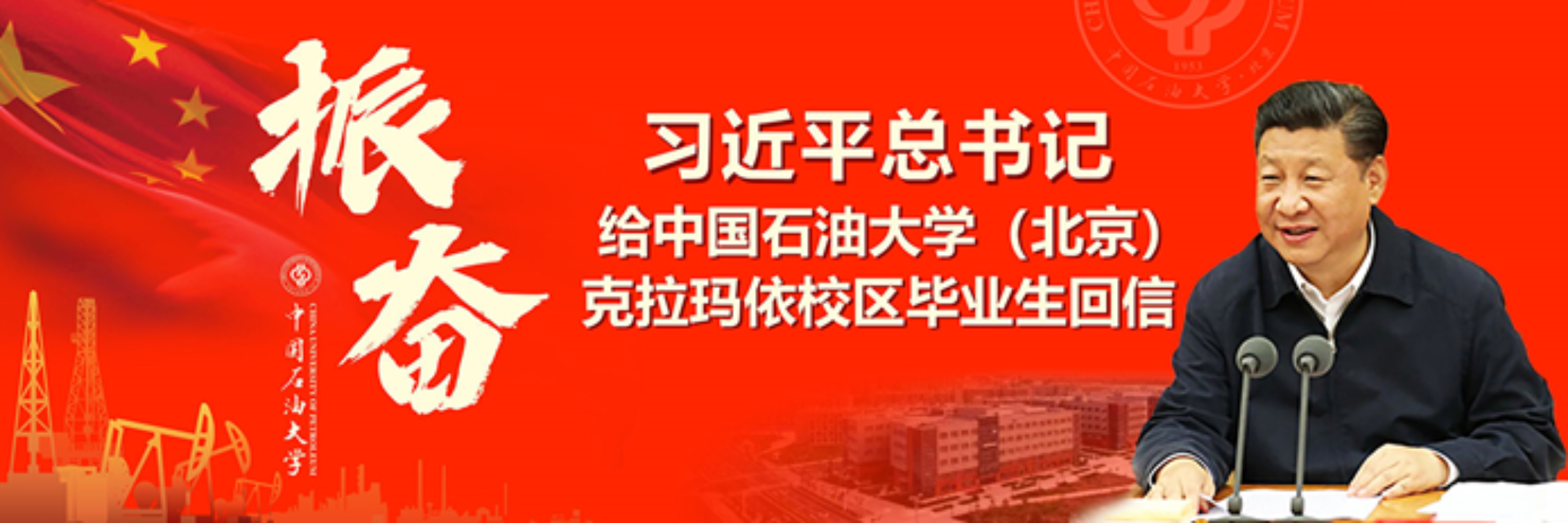 2020年7月7日,习近平总书记给克拉玛依校区首届毕业生中赴新疆基层就业的118名同学亲切回信,这是对学校育人成效的高度褒奖。